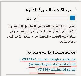 في اليسار تجد نسبة اكتمال السيرة الذاتية