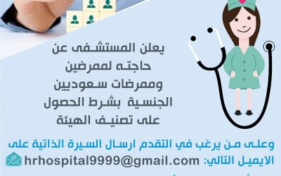 وظائف تمريض واستقبال وإشراف في مستشفى في #حائل