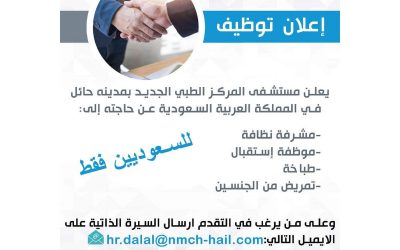 صحة #حائل وظائف لحملة الكفاءة المتوسطة والابتدائي