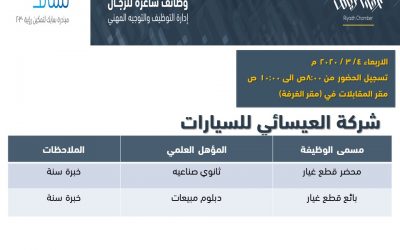 جميع وظائف غرفة الرياض الرجالية لهذا الأسبوع 24/2/1442