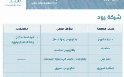 شركة الروابي الاقليمية وظائف مكاتب امامية وحجوزات ومقدمي ضيافة