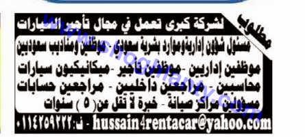 وظائف شركة تأجير سيارات موظفين إداريين وموظفين تأجير ومندوبين وميكانيكون ومحاسبين ومراجعين