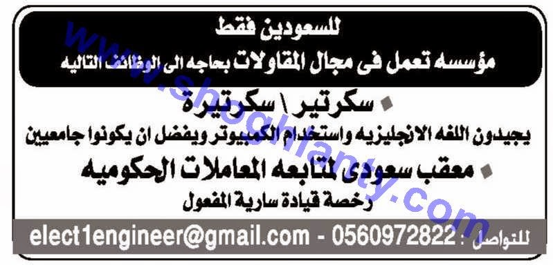 وظائف سكرتير وسكرتيرة في جدة استخدام حاسب ولغة انجليزية ويفضل الجامعيين + وظيفة معقب في جدة 1435 2014