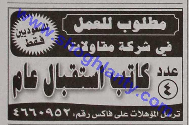 وظائف كتاب استقبال عدد 4 في شركة مقاولات