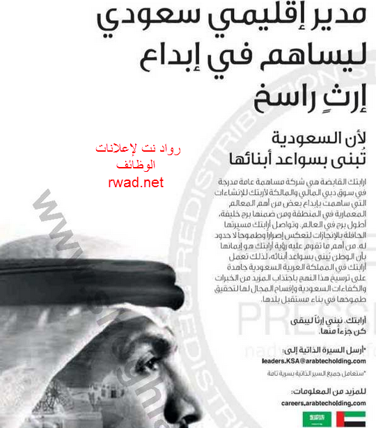 وظيفة مدير اقليمي في شركة اربتك القابضة الاماراتية في السعودية