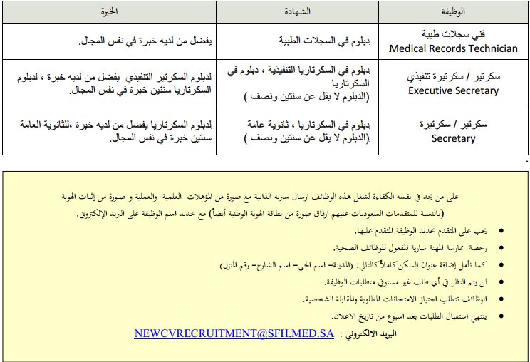 فني سجلات طبية وسكرتير وسكرتيرية تنفيذية