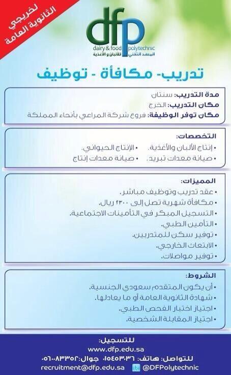 وظائف المراعي المعهد التقني للألبان والأغذية راتب 5500 ريال دورة سنتان تدريب