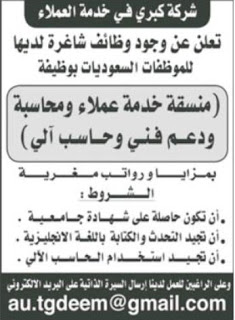 وظائف نسائية خدمة عملاء ومحاسبة ودعم فني وحاسب آلي #الرياض
