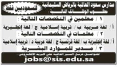 مدارس سعود العالمية وظائف معلمين ومعلمات ومدير موارد في #الرياض