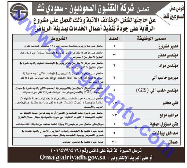 شركة سعودي تك وظائف مدير مشروع #مهندسين حاسب ومدخل بيانات وعمال في #الرياض
