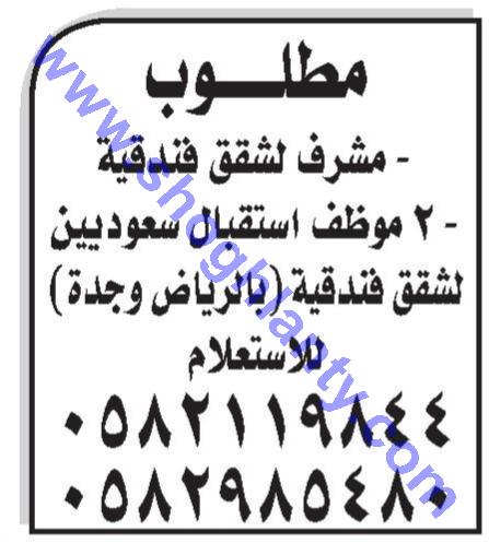 وظائف مشرف شقق فندقية واستقبال في #الرياض #جدة