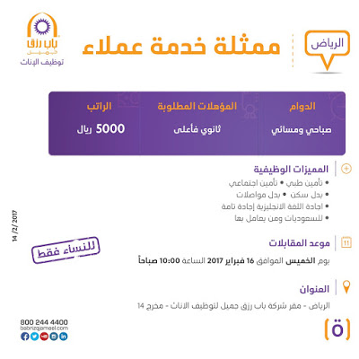 وظائف نسائيه ممثلات خدمه عملاء رواتب 5000 ريال في #الرياض