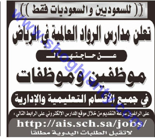 مدارس الرواد العالمية في #الرياض وظائف إداريه وتعليميه للجنسين