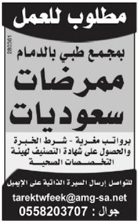وظائف ممرضات في مجمع طبي في #الدمام