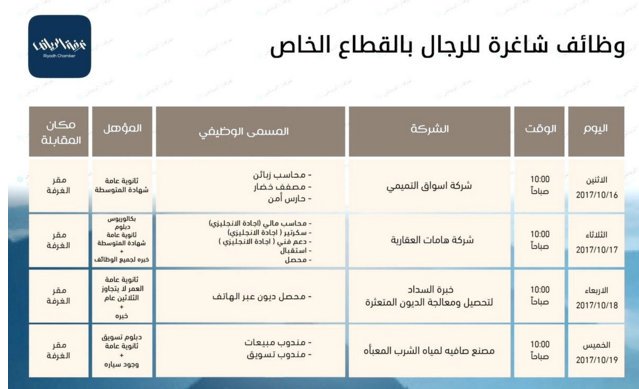 غرفة #الرياض وظائف لحملة الكفاءة المتوسطة والثانوي والدبلوم والبكالوريوس