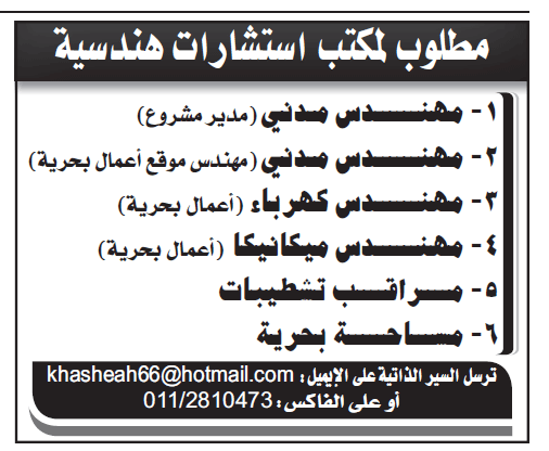 وظائف #مهندسين كهرباء وميكانيكا ومدني ومساحة بحرية