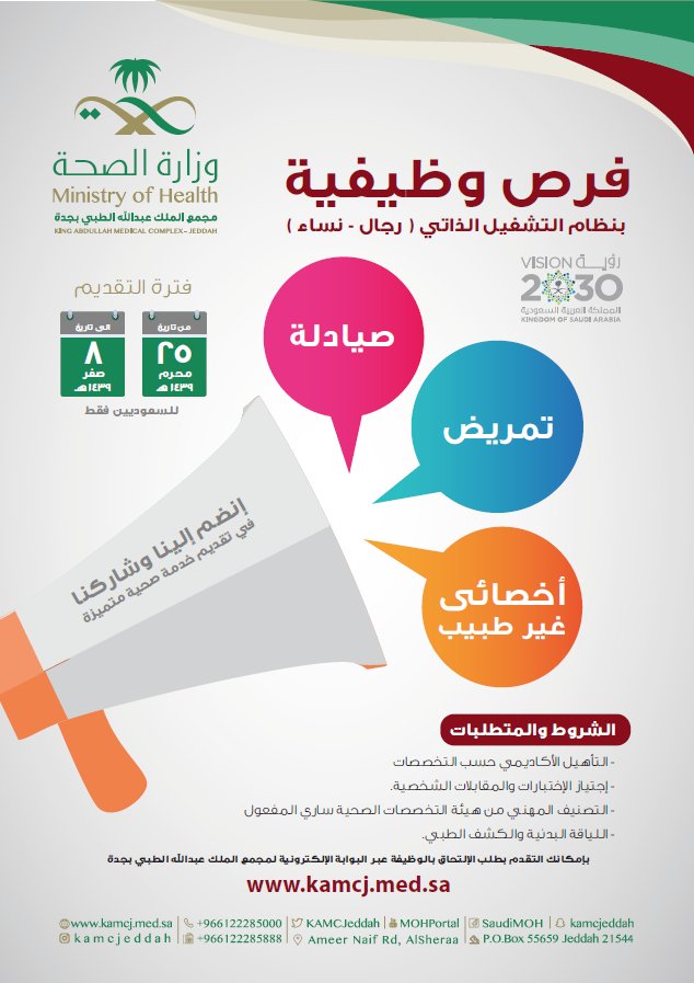 مجمع الملك عبدالله الطبي في #جدة وظائف نسائية ورجالية طبية تمريض صيدلة غير اخصائيين