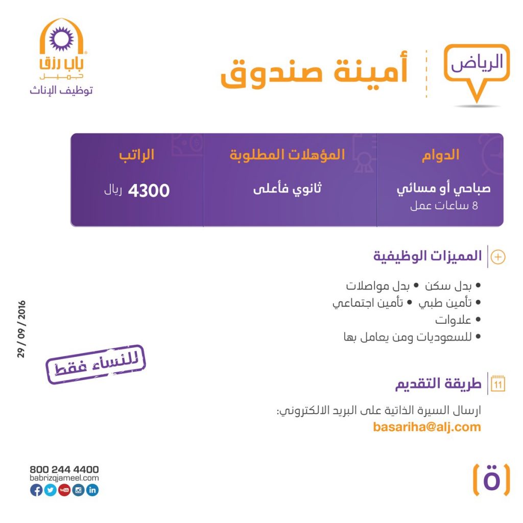 وظائف امنيات صندوق في #الرياض رواتب 4000 ريال