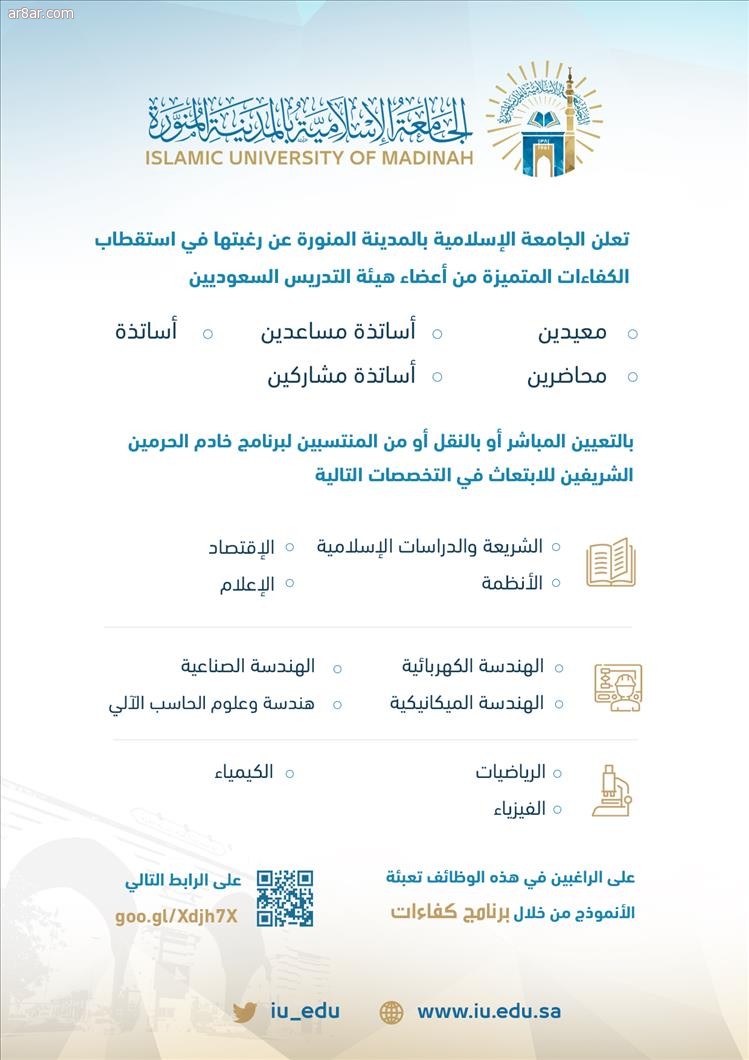 الجامعة الاسلامية في #المدينة وظائف اكاديمية لكل التخصصات وايضاً للمبتعثين