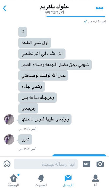 هذه محادثة مصري قذر مبتز مع باحثه عن عمل وهي من نشرت هذه المحادثه وفضحته في تويتر