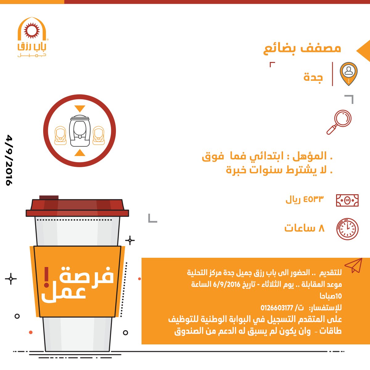 04/09/2016 | أحدث الوظائف اليوم، وظائف جدة اليوم