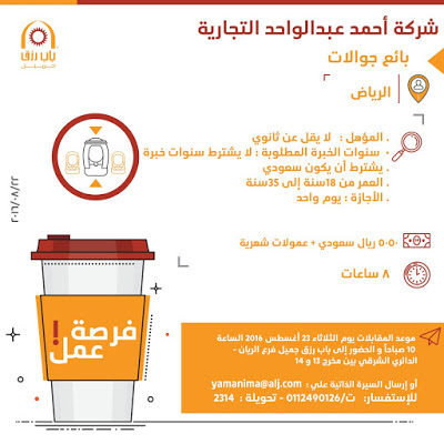 شركة احمد عبدالواحد وظائف بائعين جوالات في #الرياض رواتب 5050 ريال