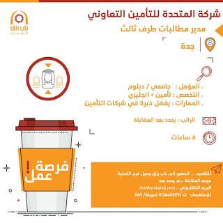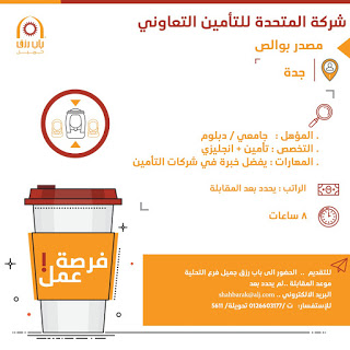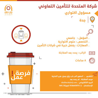 شركة المتحدة للتأمين التعاوني وظائف في #جدة مسئول مطالبات ومصدر بوالص ومدير للجامعيين