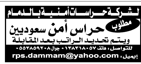 وظائف حراس امن في الدمام