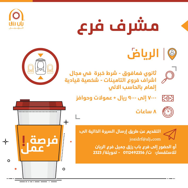 وظيفة مشرف فرع في #الرياض لحملة الثانوية رواتب 7000 ريال حتى 9000 ريال