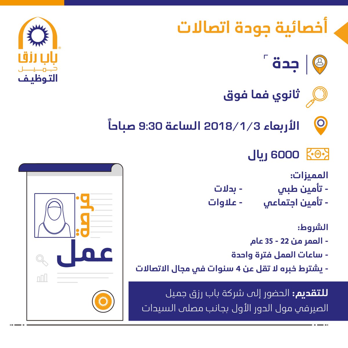 وظائف نسائيه في جدة اخصائيه جودة اتصالات