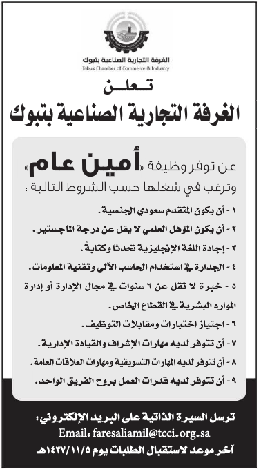 الغرفة التجارية #تبوك وظيفة أمين عام