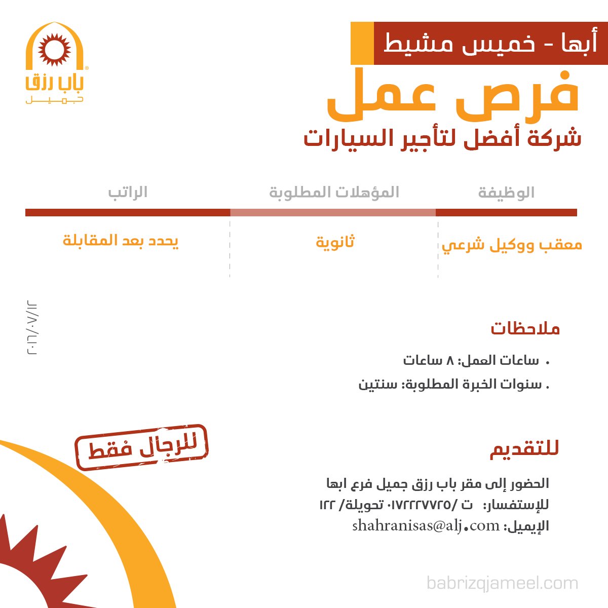 شركة افضل لتأجير السيارات وظائف في #ابها #خميس_مشيط