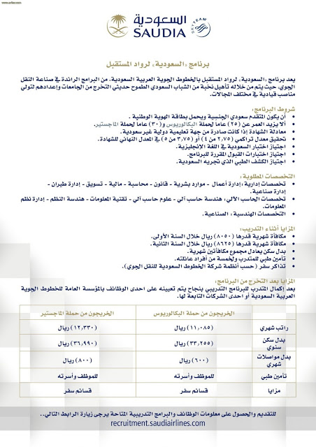 الخطوط السعودية برنامج الرواد لحملة البكالوريوس والماجستير