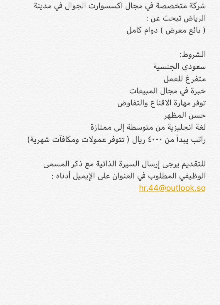 وظائف في الرياض بمسمى بائع معرض في مدينة الرياض