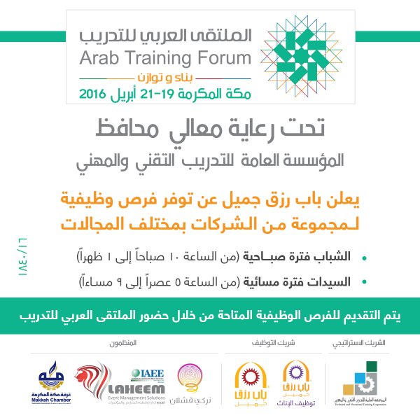 وظائف في #مكة في شركة منوعه من 19 حتى 21 ابريل 2016