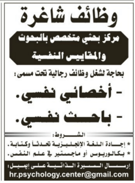 وظائف اخصائي نفسي وباحث نفسي