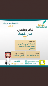 وظائف في الرياض فني كهرباء ولحام وهيدروليك