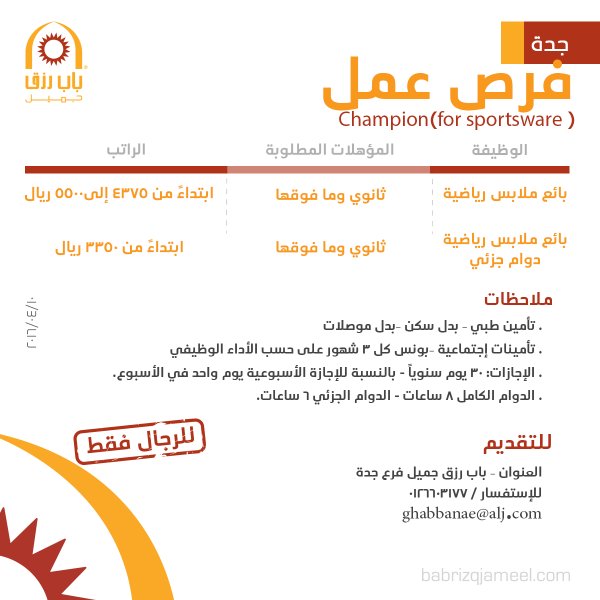 وظائف بائعي ملابس في #جدة رواتب 4375 حتى 5500 ريال