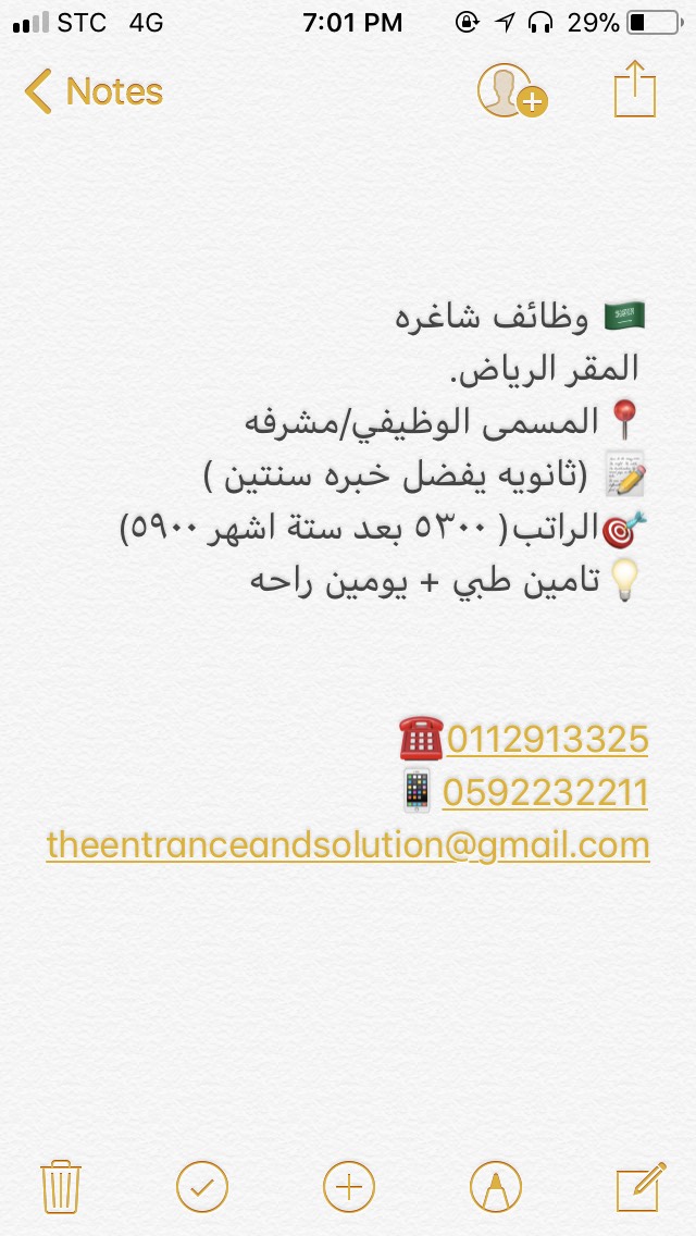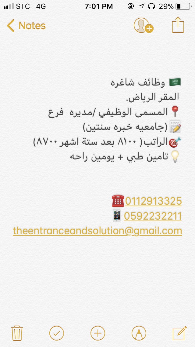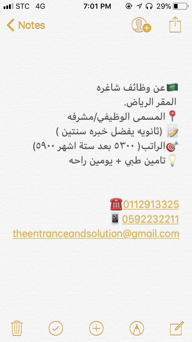 اعلن احد الجهات في الرياض عن توفر وظائف بالمسميات التاليه