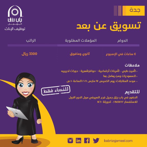 تسويق عند بعد وظائف نسائيه في #جدة رواتب 3300 ريال