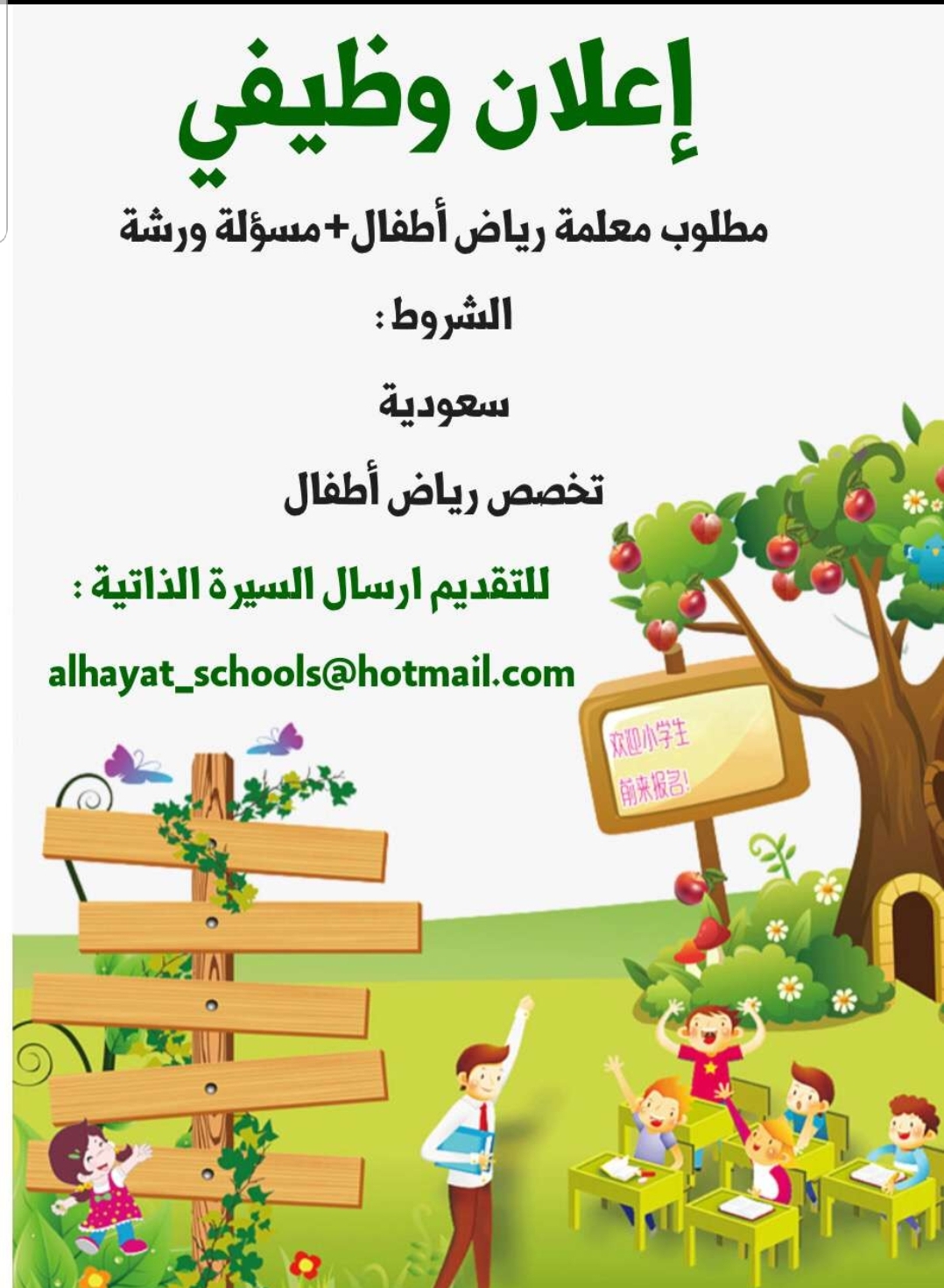 وظائف في الرياض معلمة رياض اطفال ومسؤولة ورشة