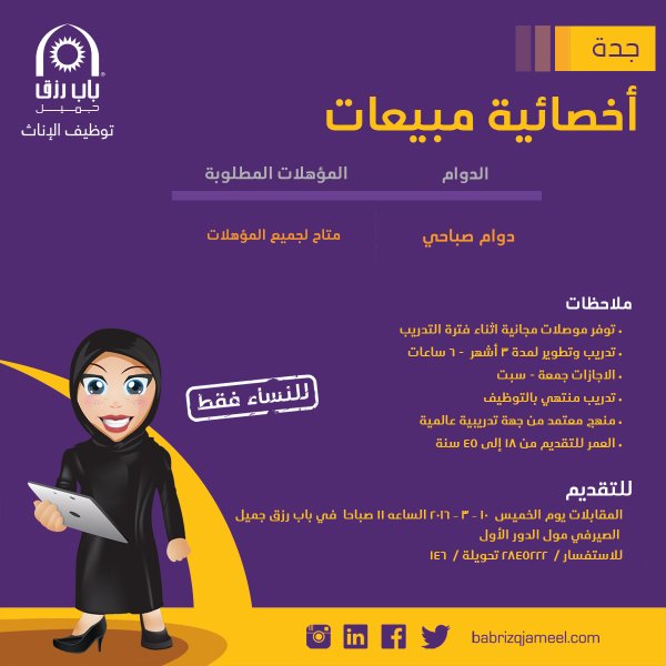 وظائف اخصائيات مبيعات لكل المؤهلات في #جدة