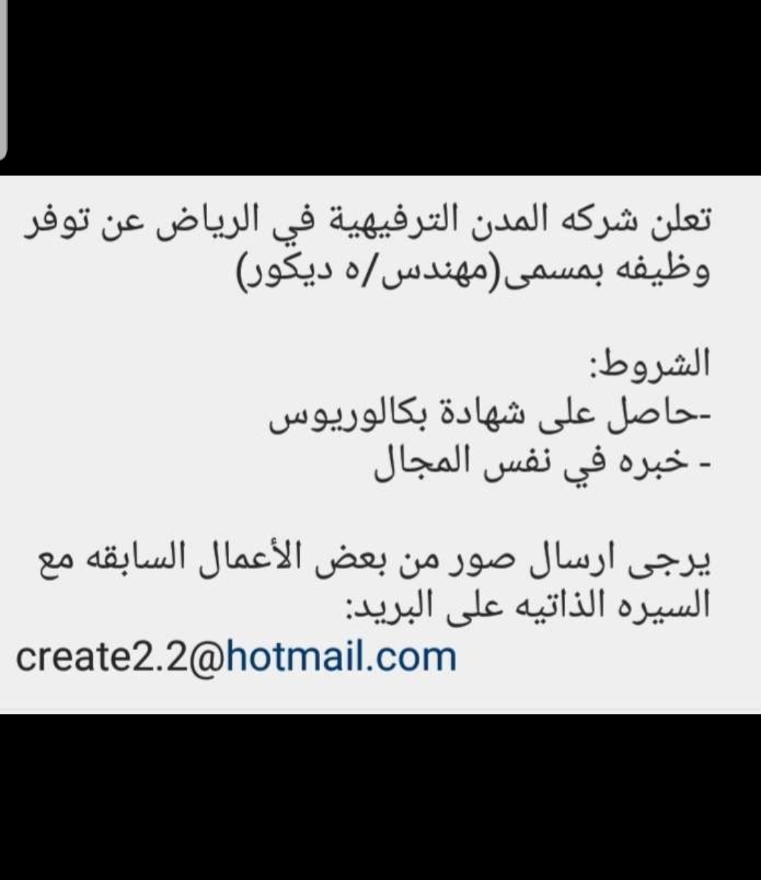 وظيفة بمسمى مهندس او مهندسة ديكور