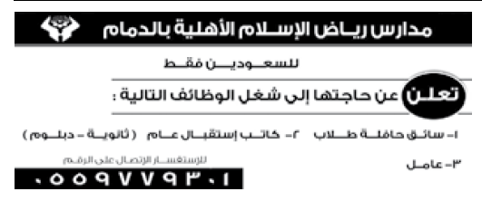 مدارس رياض الاسلام وظائف سائق حافلة طلاب وكاتب استقبال وعامل في #الرياض