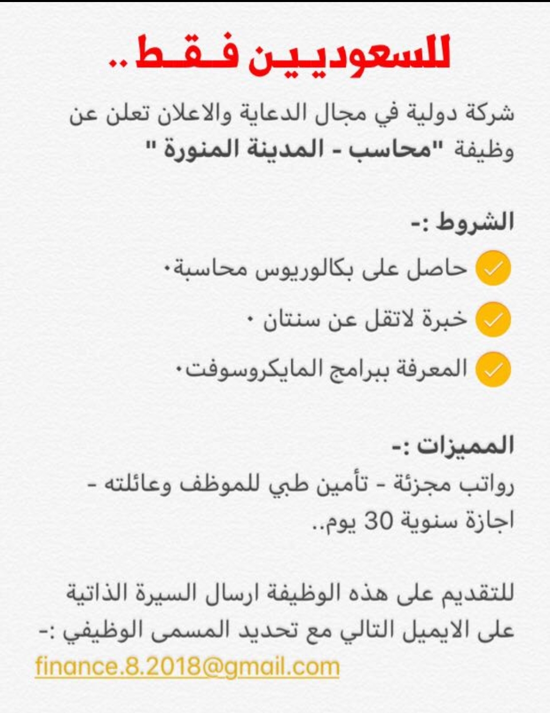 معنونة بأسم الوظيفة ” محاسب – المدينة المنورة”