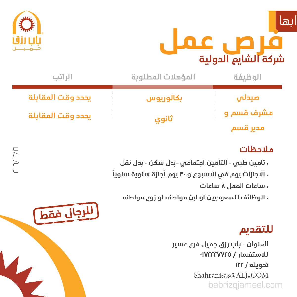 شركة الشايع وظائف صيدلي ومشرف قسم ومدير قسم