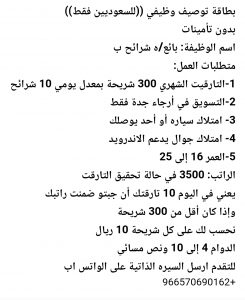 وظائف بائعين شرائح في جده براتب 3500 ريال بالتفاصيل التاليه
