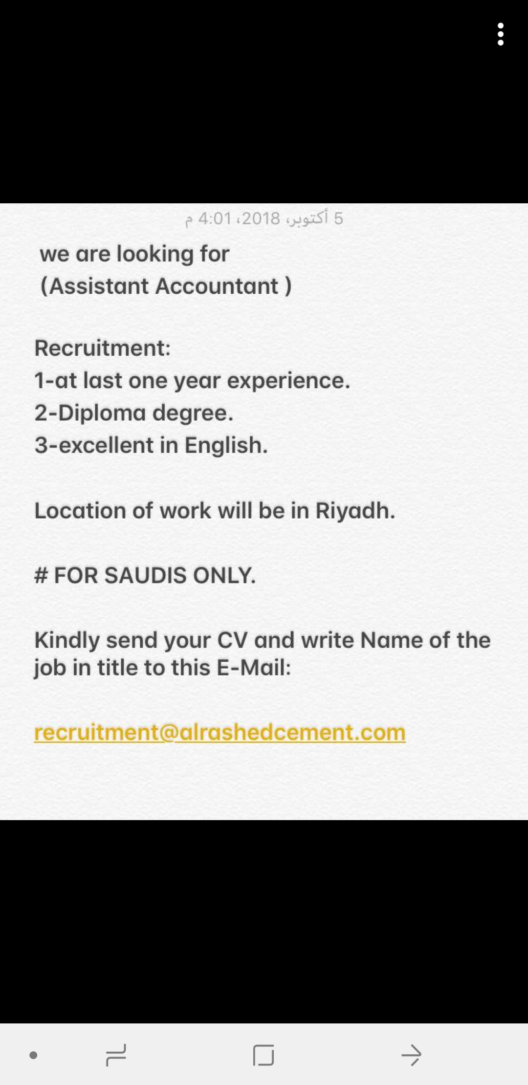 المؤهلات : الثانوية العامة ، الدبلوم.