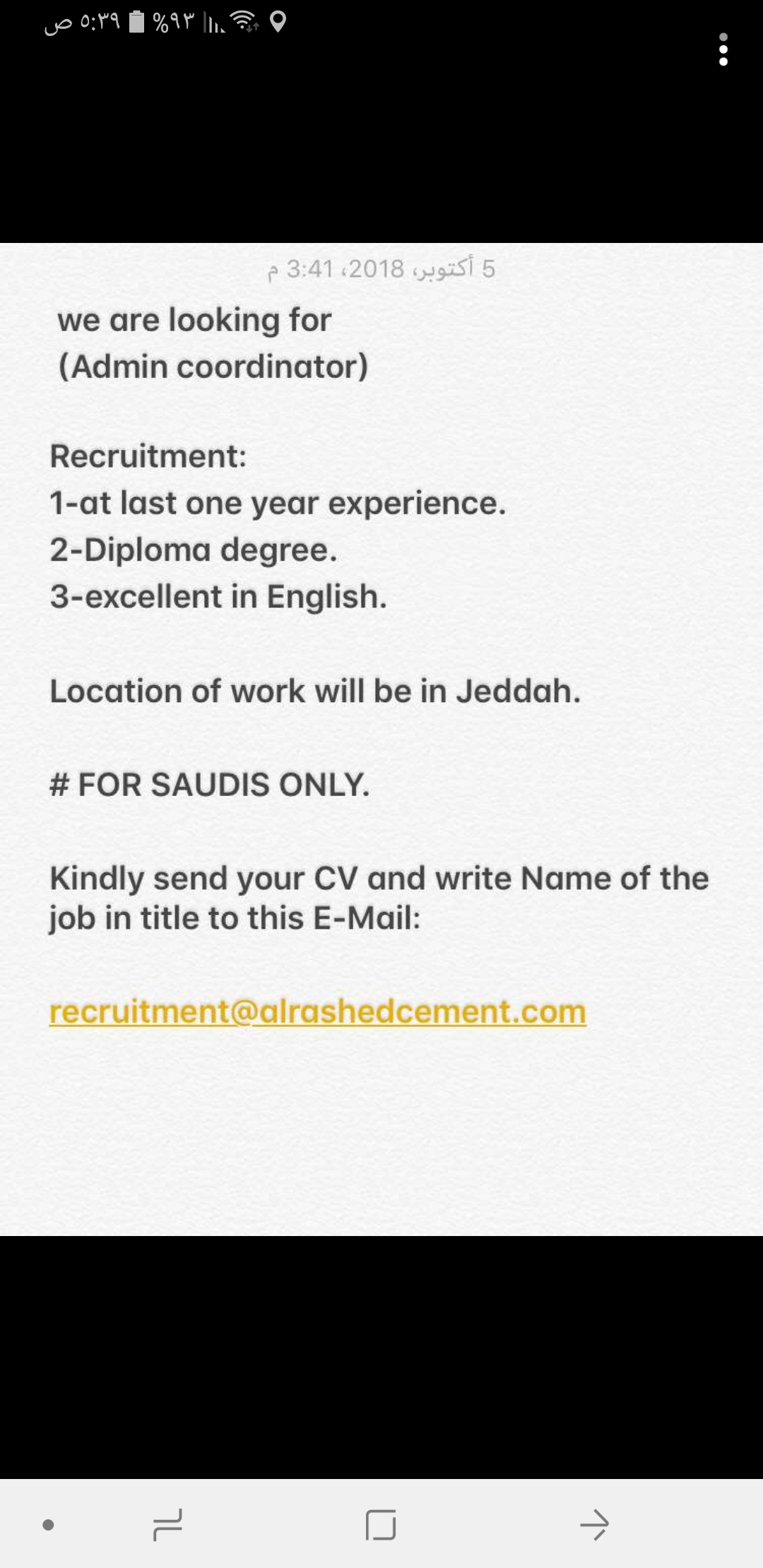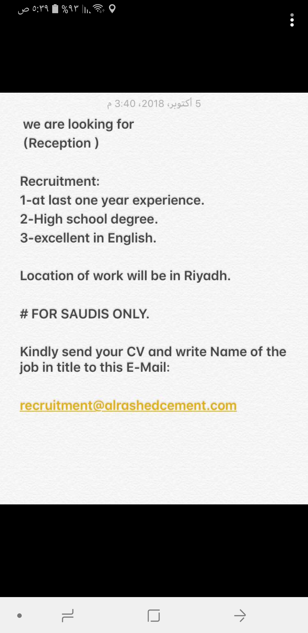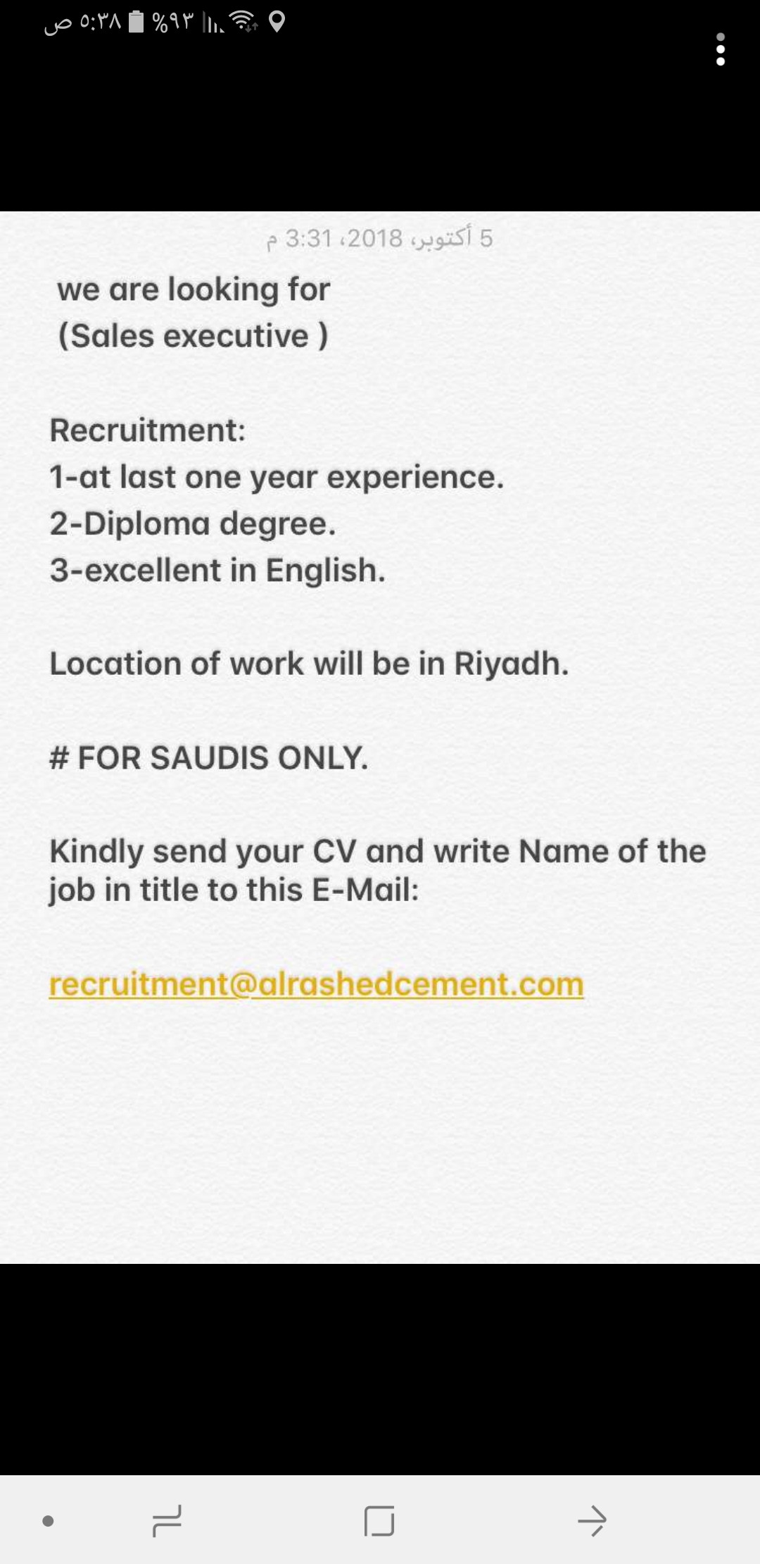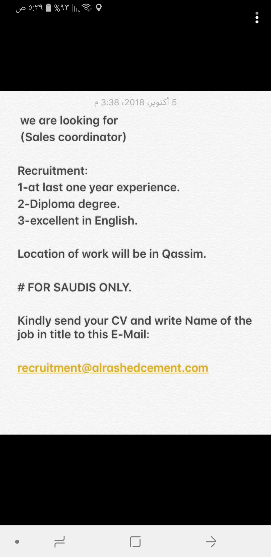 ترسل السير للايميل التالي