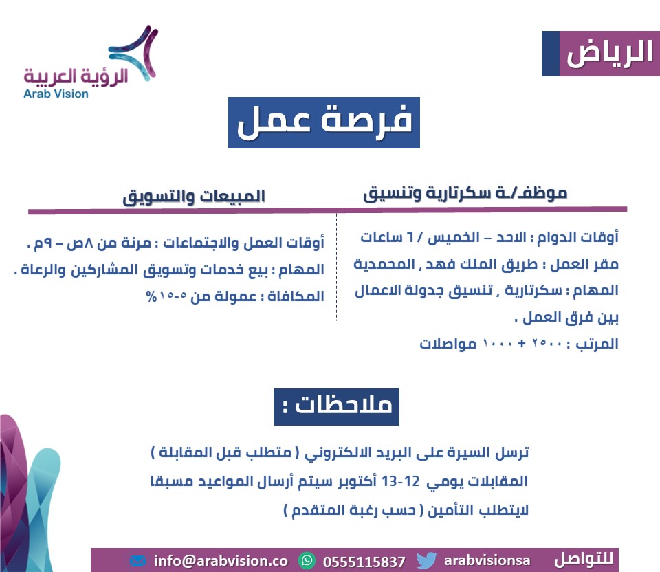 اعلنت الرؤية العربية عن وظائف في الرياض